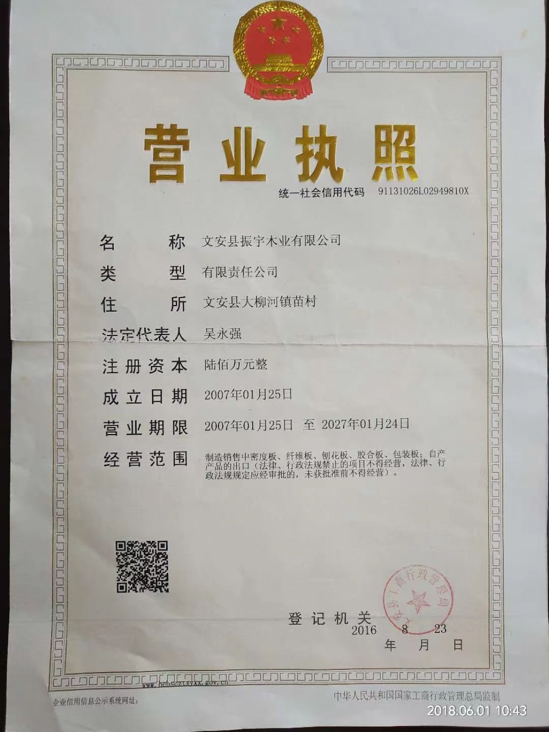 文安縣振宇木業有限公司位于文安縣大柳河鎮苗村文左公路南側,交通便利,地理位置優越,占地面積60000多平方米,于2003年3月籌建,2004年1月投產,開始稱“文安縣振宇中密度板廠”,2007年1月改為“文安縣振宇木業有限公司”。 …